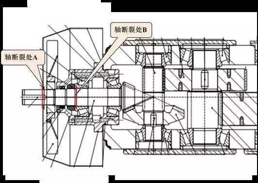 在生產(chǎn)實(shí)踐經(jīng)驗(yàn)得知,硬齒面減速機(jī)高速軸很容易發(fā)生斷裂,如某國(guó)外減速機(jī)的高速軸經(jīng)常在兩處發(fā)生斷裂: