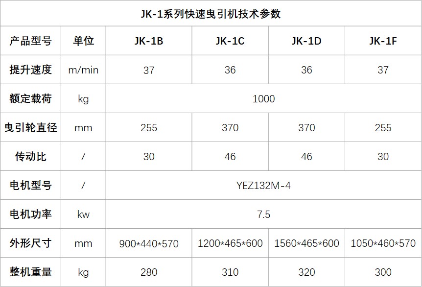 - 工作效率大幅提升。JK-1B型曳引機(jī)的的提升速度是37m/min,是慢速卷揚(yáng)機(jī)速度的2倍。