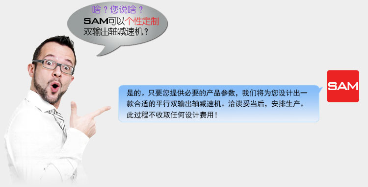 雙輸出軸減速機(jī)僅僅是非標(biāo)準(zhǔn)減速機(jī)中較有代表性的產(chǎn)品之一,在十多年的產(chǎn)品定制過程中,我們接觸了太多的非標(biāo)減速機(jī)案例,比如6軸、8軸、甚至還有14軸的多軸減速機(jī)。其實(shí),我們關(guān)心的不是您的設(shè)備需要幾根輸出軸,我們關(guān)心的是,您的技術(shù)參數(shù)是否準(zhǔn)確并完整。只要技術(shù)參數(shù)到位了,正常情況下,我們都可以給出佳的技術(shù)方案。